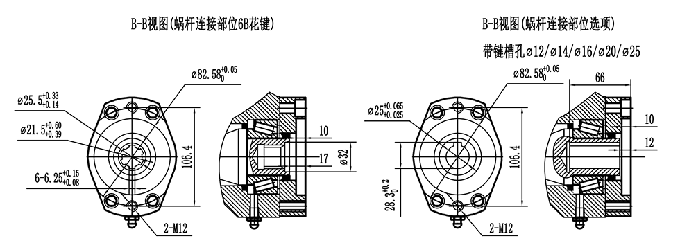 蝸桿輸入端:6B花鍵孔,φ25帶平鍵