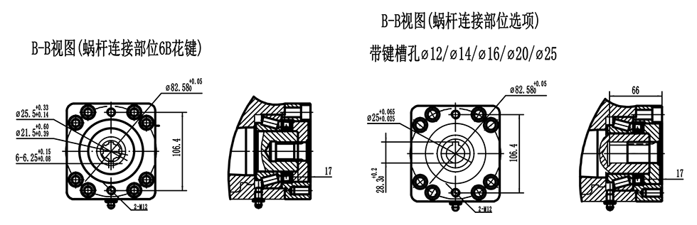 蝸桿輸入端:6B花鍵孔,φ25帶平鍵
